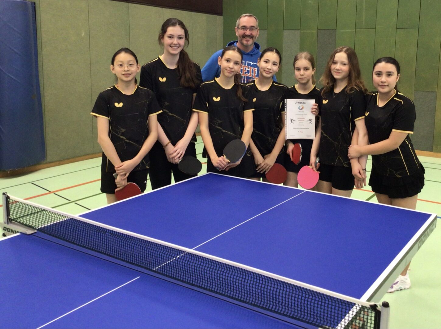 Bezirksmeisterinnen U16-Tischtennis mit Coach Stefan Althoff
