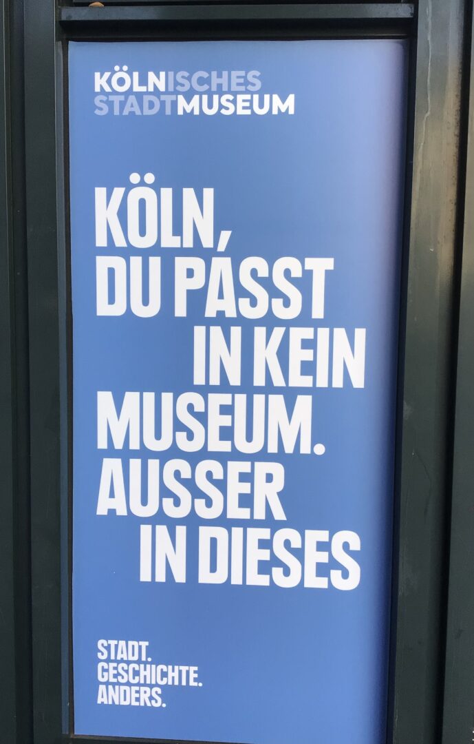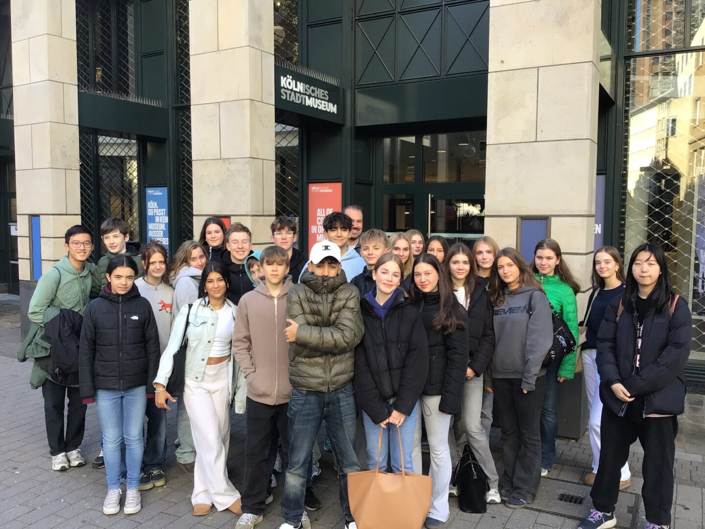 Unser Ausflug ins Kölner Stadtmuseum war sehr spannend und lehrreich. Wir haben die Exkursion in der zweiten Stunde gestartet und sind zuerst mit der Bahn zum Neumarkt gefahren. Von dort sind wir etwa 10 min zum kölnischen Museum gelaufen. Wir hatten eine interessante Führung durch die Geschichte von Köln angefangen 50 n. Chr. mit einer kleinen Ansiedlung eines römischen Stamms bis 2021 die Auswirkungen der Corona Pandemie. Wir erfuhren sämtliche Dinge über Kölner Legenden und Kriege, die Einnahme von Frankreich und der Erfindung der Hausnummern durch Napoleon bis hin zu der damit verbundenen Gründung von 4711. Danach zeigt uns die Führerin eine Ausstellung in der sich eine Gruppe von Kölnerinnen und Kölnern mit Fragen auseinandergesetzt haben die uns als Bürger/innen von Köln beschäftigen. Zum Beispiel „Was lieben wir?“ oder „Was macht uns Angst?“. Wir hörten Audiobeiträge und durften sogar echte Kölner Theaterpuppen in der Hand halten. Besonders interessant waren die vielen Ausstellungsstücke aus dem Mittelalter und die Objekte, die das Alltagsleben der Menschen in früheren Zeiten gezeigt haben. Durch die Führung haben wir einen guten Überblick über die Entwicklung der Stadt bekommen und konnten viele neue Eindrücke sammeln. Nach der Führung durften wir noch ein bisschen alleine durchs Museum laufen und konnten uns die Ausstellung noch mal in Ruhe anschauen. Nach einem kurzen Fußmarsch zur Bahn und einer schnellen Fahrt sind wir wieder an der Schule angekommen und starteten in unsere wohlverdiente Mittagspause. Der Besuch hat uns gezeigt, wie reich und vielfältig die Geschichte Kölns ist und wie viel bis heute noch erhalten ist.