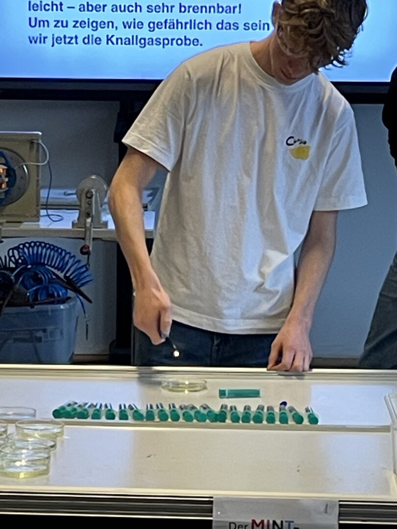 dabei Spaß haben. Und zu einem naturwissenschaftlichen „Wow-Moment“ gehört natürlich ein Experiment mit Wow-Effekt. Deshalb entschieden wir uns für die klassische Knallgasprobe.