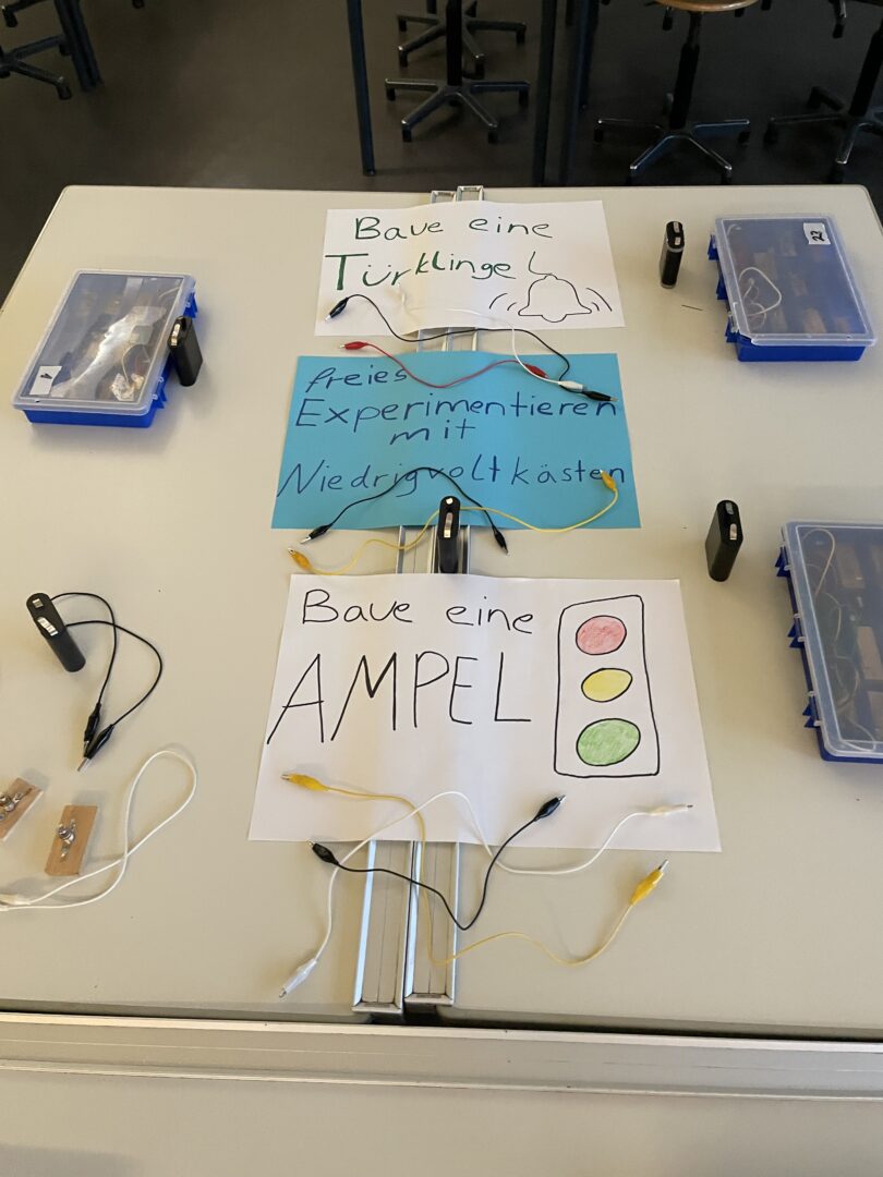 Besonders viel Interesse weckte das Experiment mit Rotkohlsaft, bei dem die jungen Besucherinnen und Besucher auf spielerische Weise den Effekt von Säuren und Basen kennenlernen durften. Auch die Mini-Volt-Kästen boten Gelegenheit, einfache elektrische Schaltungen auszuprobieren und ein Gefühl für Stromkreise zu entwickeln.